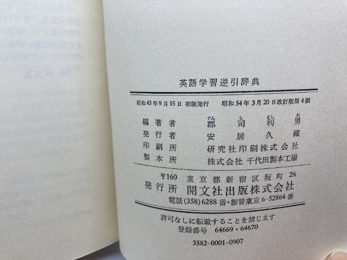英語学習逆引辞典 郡司利男 開文社 昭和54 4刷