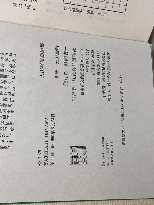 大山将棋勝局集 大山康晴 講談社