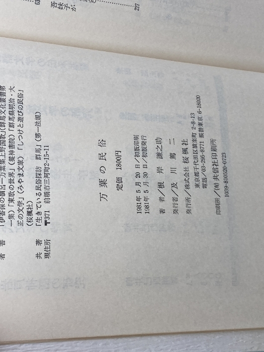 万葉の民俗  根岸謙之助 桜楓社