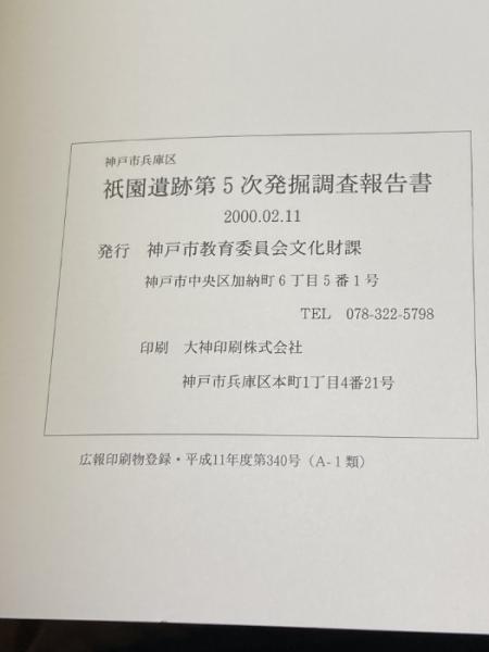神戸市兵庫区 祇園遺跡 第5次発掘調査報告書 2000 53P+グラフ+図版46P 神戸市教育委員会