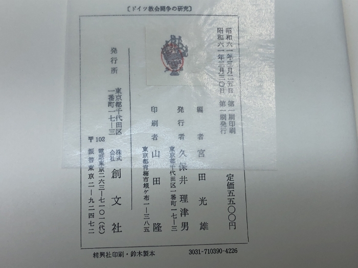 本 ドイツ教会闘争の研究 宮田光雄 編 創文社 1986年初版