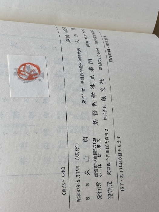 自然と人生 久山康 創文社
