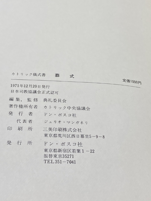 カトリック儀式書 「葬式」典礼委員会編・監修、ドン・ボスコ社、1971 114p