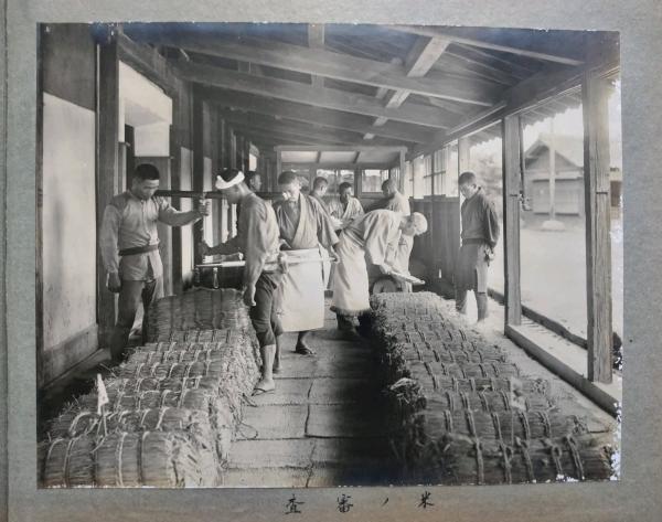 • 解説 アルバム形式、9枚貼り付け(1頁に1枚)。奥付なし、写真帖の大きさ26×34.5㎝。写真20×27㎝モノクロ。 内容 三居稲荷神社・倉庫全景(パノラマ)・倉庫周辺・倉庫内部・米の搬入・米の審査・米の出庫