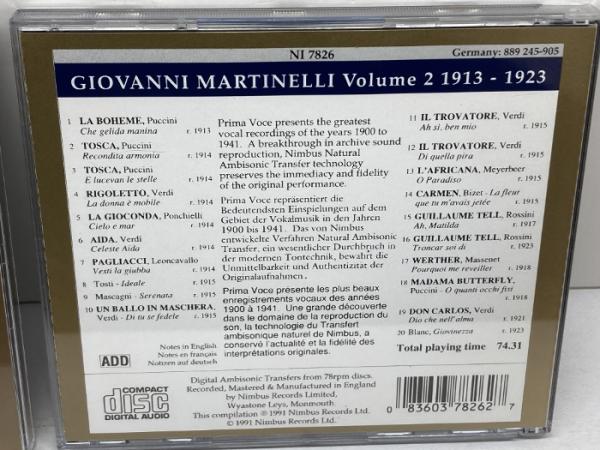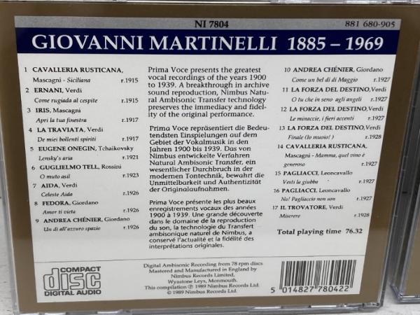CD 2枚セット ジョヴァンニ・マルティネッリ 1885-1969、1913-1923 Nimbus Records
