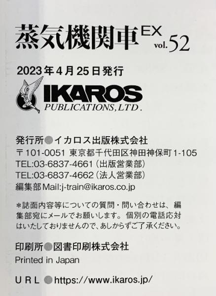 蒸気機関車EX 2023年Vol/52 蒸気をあいするすべての人へ 特集:伯備線のD51新見機関区 /C10・C11概論 イカロス出版