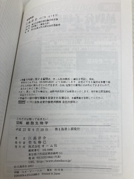 【※カバー無し】これだけは知っておきたい 図解 細胞生物学 オーム社 江島 洋介
