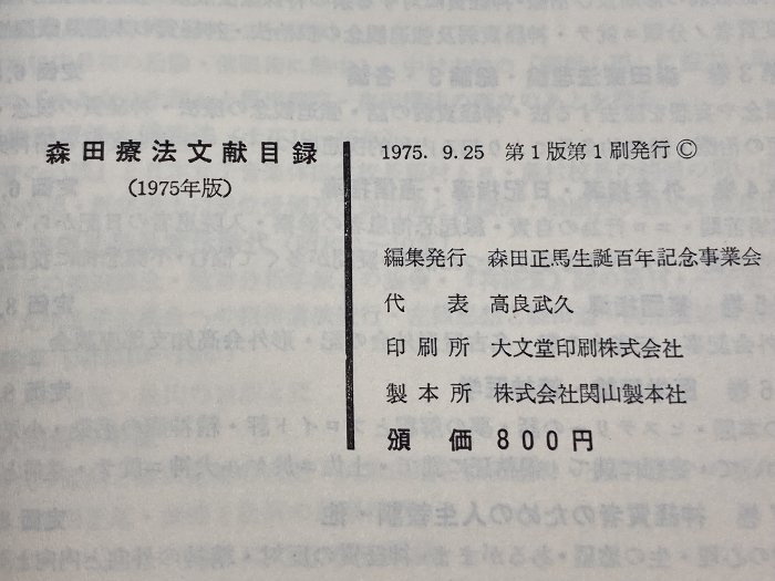 森田療法文献目録 1975年版 森田正馬生誕百年記念事業会編