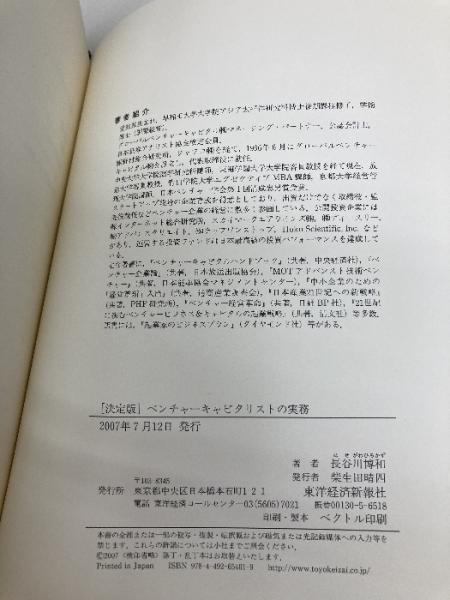 決定版 ベンチャーキャピタリストの実務 東洋経済新報社 長谷川 博和
