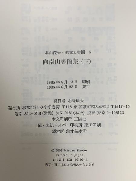 向南山書簡集(下) 遺文と書簡 6 みすず書房 北山 茂夫