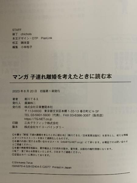 マンガ 子連れ離婚を考えたときに読む本 日東書院本社 新川 てるえ