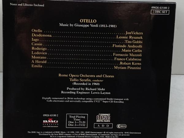 2CD  ヴェルディ オテロ トゥリオ・セラフィン指揮 ジョン・ヴィッカース EU盤