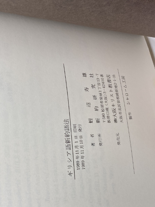 ギリシア語新約語法 蛭沼寿雄 新約研究社
