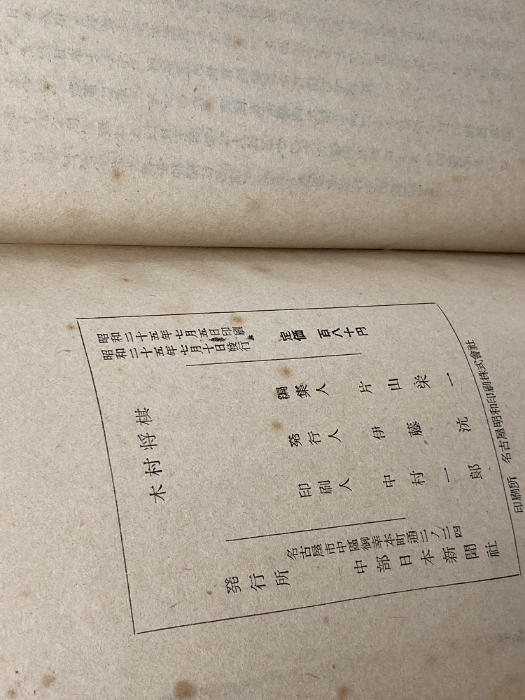 木村将棋 対A級八段十番戦 昭和25 中部日本新聞社
