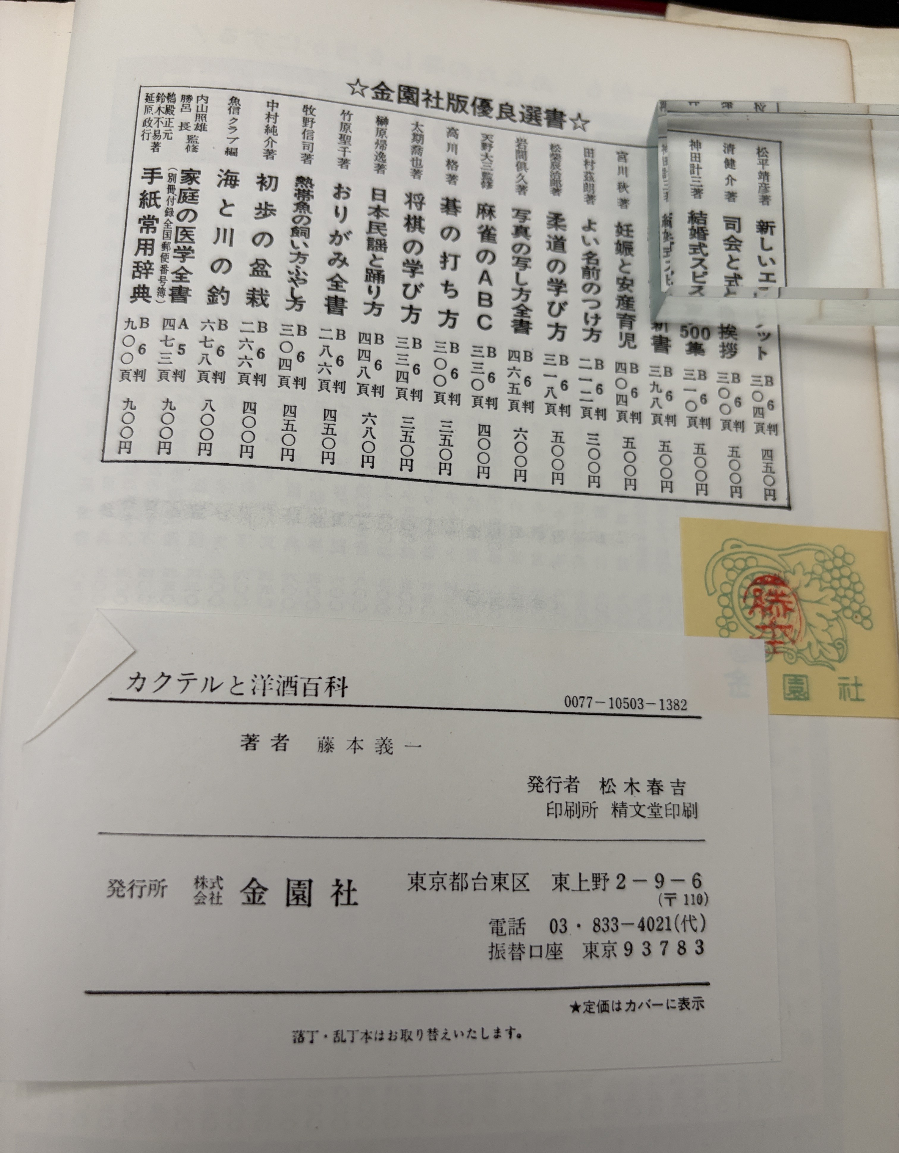 カクテルと洋酒百科 : カクテルの作り方1000種 <実用百科選書> 版不明
