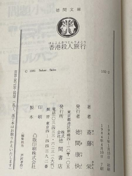 香港殺人旅行 (1981年) (徳間文庫) 徳間書店 斎藤 栄