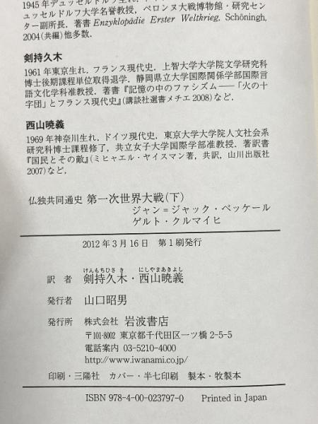 仏独共同通史 第一次世界大戦(下) 岩波書店 ジャン=ジャック・ベッケール