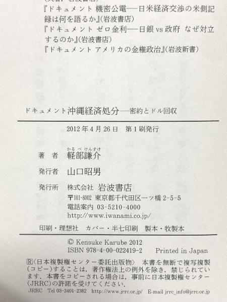 ドキュメント 沖縄経済処分――密約とドル回収 岩波書店 軽部 謙介