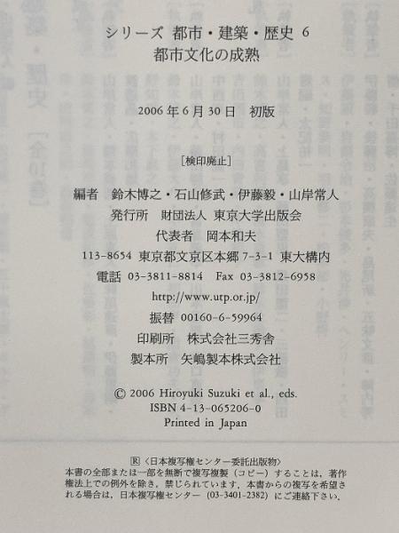 都市文化の成熟 (シリーズ 都市・建築・歴史 6) 東京大学出版会 鈴木博之 石山修武 伊藤毅 山岸常人