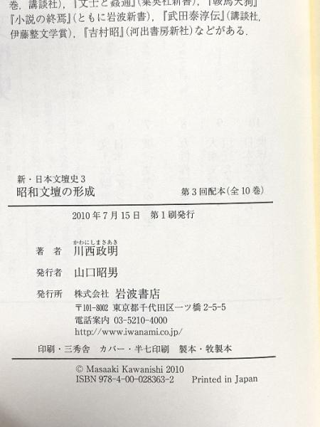 昭和文壇の形成 (新・日本文壇史第3巻) 岩波書店 川西 政明