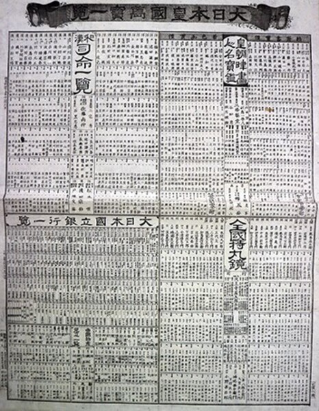 • 解説 48×37糎 皇朝書画人名宝鑑・和漢司命一覧・全国持丸鏡・大日本国立銀行一覧