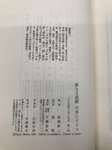 異なる悲劇日本とドイツ 文藝春秋 西尾 幹二