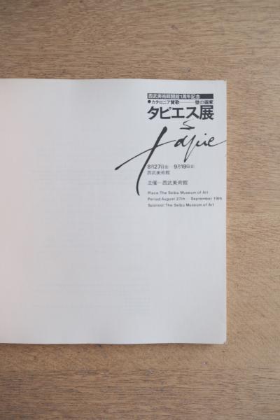 スペイン・カタロニア出身の画家アントニ・タピエスの作品を紹介。マチエールを重視した抽象表現を中心に構成された展覧会カタログ。ソフトカバー。頁付なし。