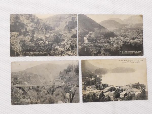 1000019■戦前 絵葉書■箱根名所 湯煙あがる堂ヶ島の全景 宮の下全景 元箱根の全景 千代橋 4枚 ヤケ