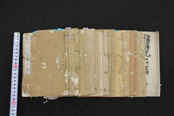 蔵印、裏表紙に書入れ、角折れ、綴糸切れがございます。