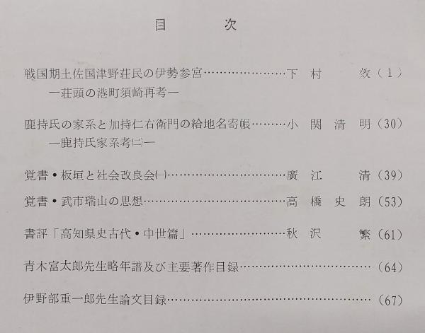 海南史学 第10号 戦国期土佐国津野荘民の伊勢参宮:荘頭の港町須崎再考…ほか