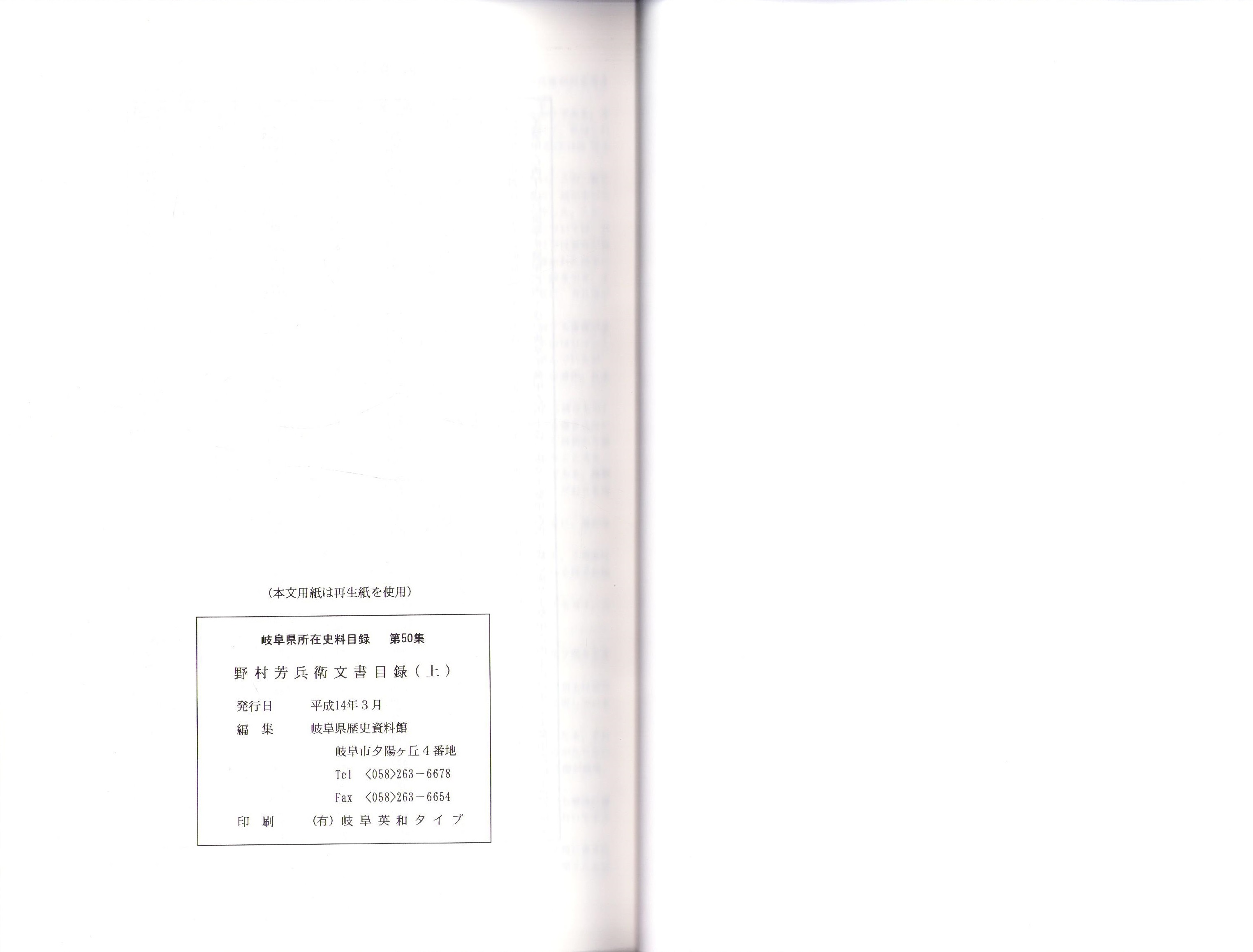 野村芳兵衛文書目録 全2冊 -岐阜県所在史料目録 第50・51集-(岐阜県)