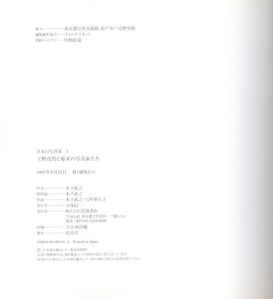 This is volume 1 of the Japanese Photographers series, published by Iwanami Shoten featuring Hikoma Ueno.