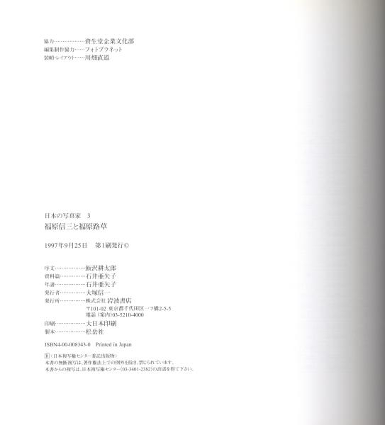 This is volume 3 of the Japanese Photographers series, published by Iwanami Shoten featuring Shizo and Roso Fukuhara.