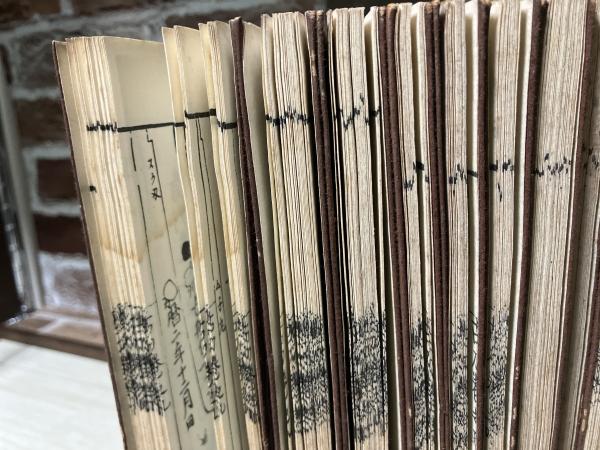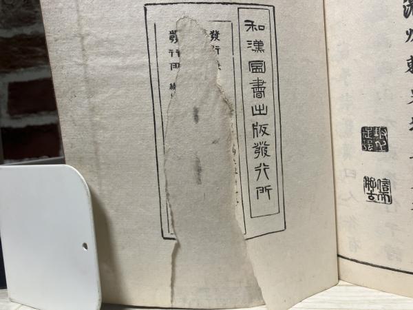 一緒にあった書物からおそらく松山堂書店ではないかと思われます。表紙にスレ・剥げ等のイタミが有ります。9巻に少々シミが有ります。他の巻も経年の劣化はありますが比較的状態は良いです。写真をあげていますのでご判断ください。