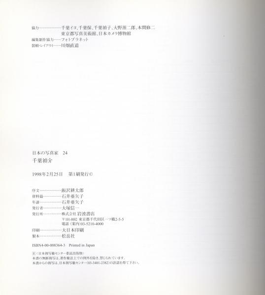 岩波書店発行の日本の写真家シリーズの24回目は千葉禎介です。