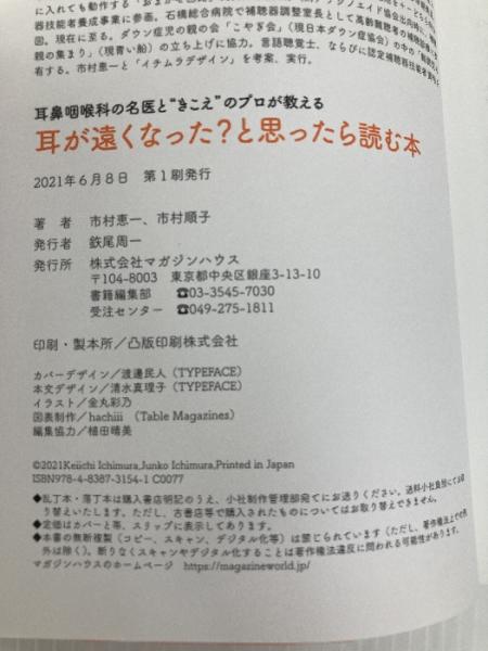 耳鼻咽喉科の名医と“きこえ"のプロが教える 耳が遠くなった?と思ったら読む本 マガジンハウス 市村順子