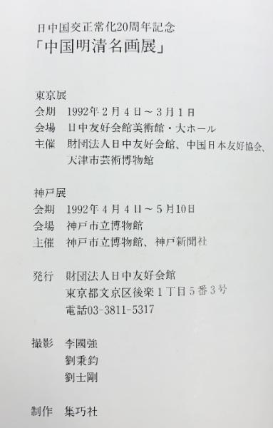 【図録】中国明清名画展 1992年 中国天津市芸術博物館秘蔵 日中国交正常化20周年記念 神戸市立博物館 日中友好会館