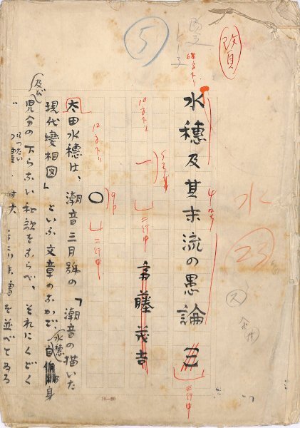 • 解説 『水穂及其末流の愚論』 毛筆・ペン書 400字詰原稿用紙14枚完 単行本「歌壇夜叉語」収録。「潮音」の引用部分約2枚はペン書きで筆跡も異なる。(種別)評論 #八木書店近代自筆物/1.草稿類 #95号近代文学特輯 95205865 ※自筆物につきましては、毎月25日前後に新蒐品を追加しております。PDF形式で御覧になりたい方は https://company.books-yagi.co.jp/archives/news/10928 を参照ください。