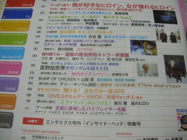 エンタミクス NO.80 2015年06月号 有村架純 表紙 高畑充希 岡田将生 芦田愛菜 渡瀬恒彦+井ノ原快彦 大島優子 松井愛莉 水谷豊 Kalafina 山崎貴×BUMP OF CHICKEN