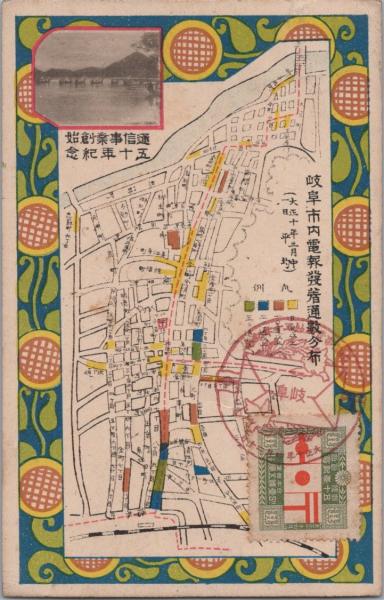 1000117■戦前 絵葉書■通信事業創始五十裏無地年記念 岐阜市内電報発着通数分布 エンタイア