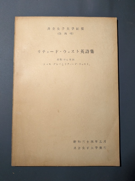 リチャード・ウェスト英詩集 解題並に附録「トマス・グレイとリチャード・ウェスト」 <共立女子大学紀要 第四輯>