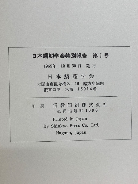 日本鱗翅学会特別報告 第1号