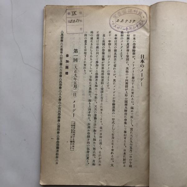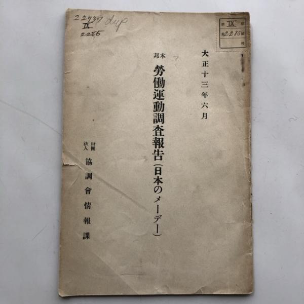 邦本 労働運動調査報告 日本のメーデー(大正13年6月・財團法人協調會情報課)