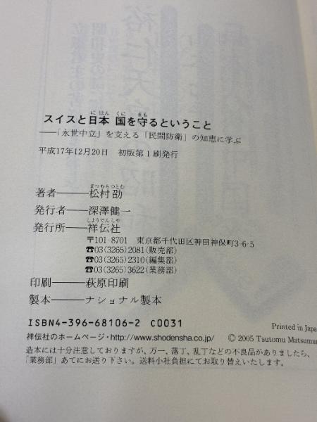 スイスと日本 国を守るということ -「永世中立」を支える「民間防衛」の知恵に学ぶ 祥伝社 松村 劭