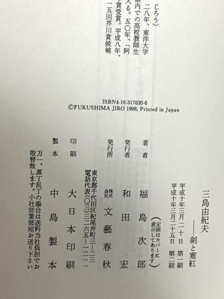 三島由紀夫-剣と寒紅 文藝春秋 福島 次郎
