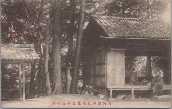 1000154■戦前 絵葉書■岐阜県 大矢田神社参籠舎附近の景 記念印