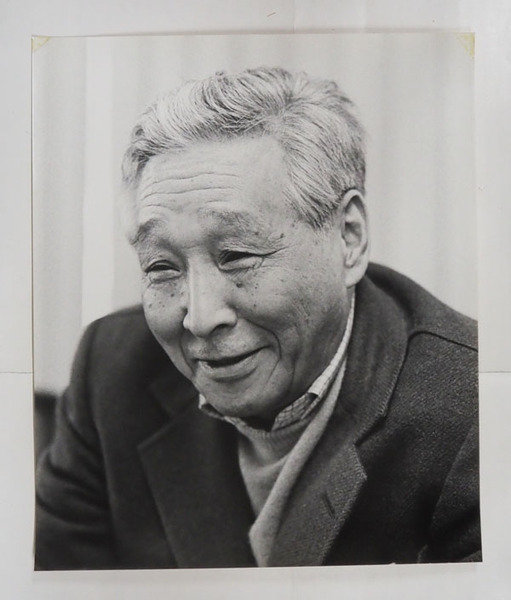 安岡章太郎肖像写真 モノクロ 裏面に文藝春秋のゴム印有 304×254ミリ 四方角にテープ跡有