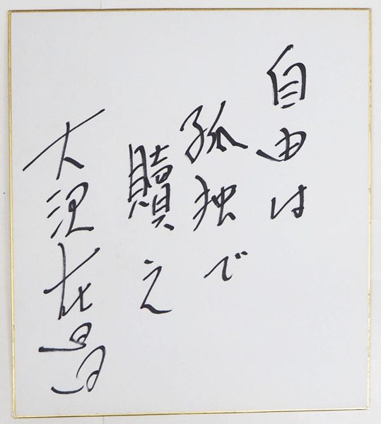 大沢在昌色紙 『自由は孤独で贖え』 Sペン書