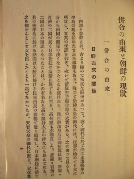 • 解説 併合の由来と朝鮮の現状 大正13年2月28日再版発行 本体のみの薄い冊子、A5判19ページ 半世紀以上の歳月を経過したものですので、軽い日焼けやスレ、一部に小さな点シミが出ています。表紙の上部右隅に蔵書印が押してあります。