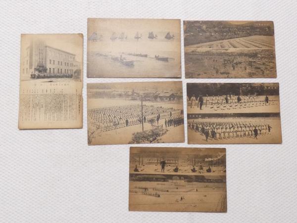1000020■戦前 絵葉書■財団法人奉公館 全景 陸戦隊演習 他 6枚 ヤケ・キズ・少破れ